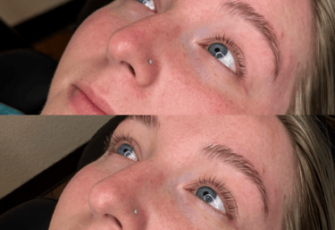 At It's Aesthetically Jess your Brow Lamination experience follows a simple four-step process designed for comfort and results. First, I cleanse and prep the brows to remove oils and ensure every hair lifts evenly. Second, a gentle lifting solution is applied to reshape and smooth your natural brow hairs, followed by a setting formula that locks them into your new, defined shape. Third, we finish with optional tinting or waxing to enhance color and symmetry. The final step is a customized aftercare plan using our favorite post-lamination essentials, hydrating brow oil, nourishing balm, and gentle cleanser, to keep your brows soft and conditioned between appointments. Each client leaves with tailored guidance for long-lasting results and healthy, glossy brows that stay picture-perfect.
